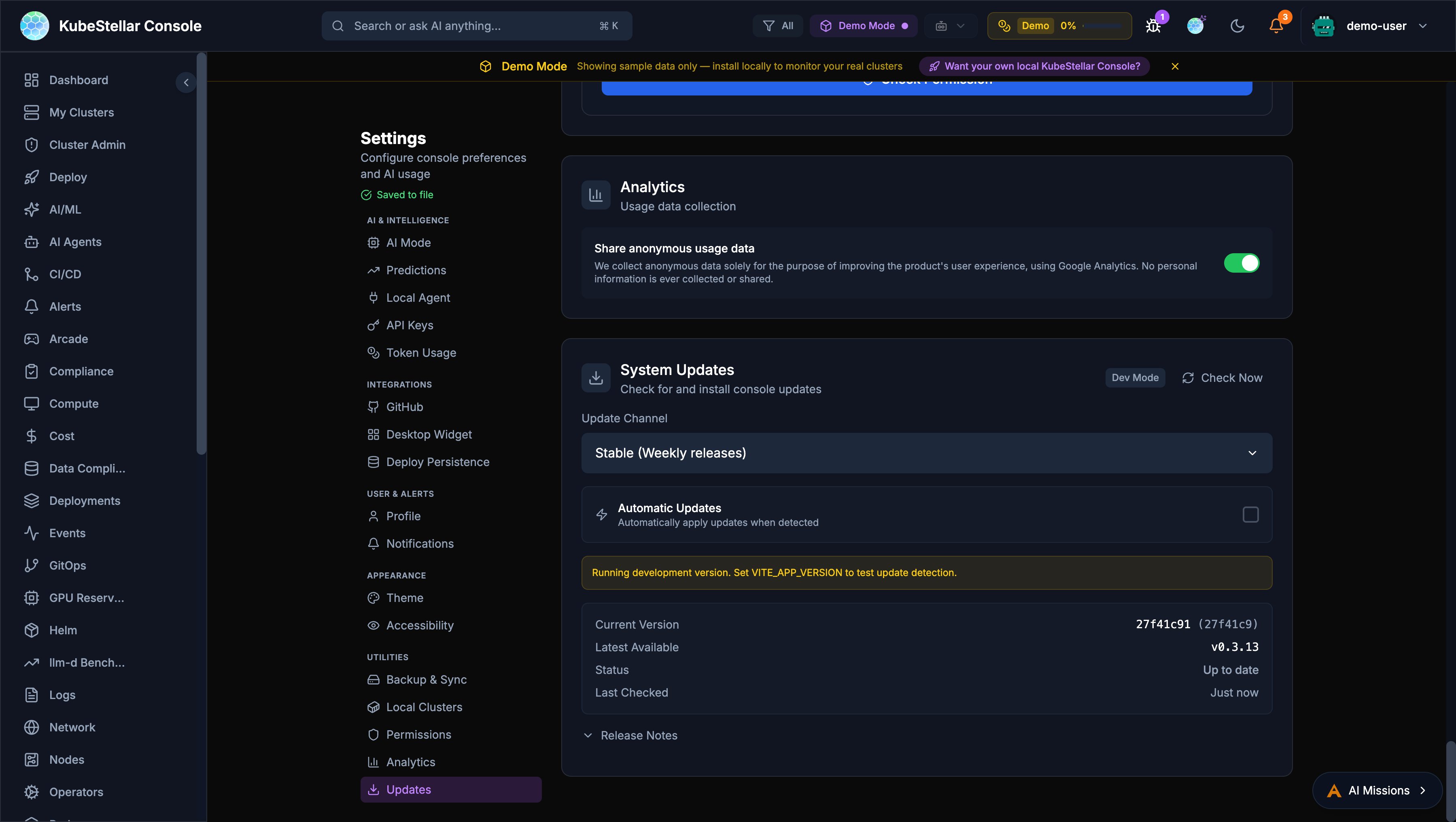 The KubeStellar Console follows a regular release schedule with two update channels.